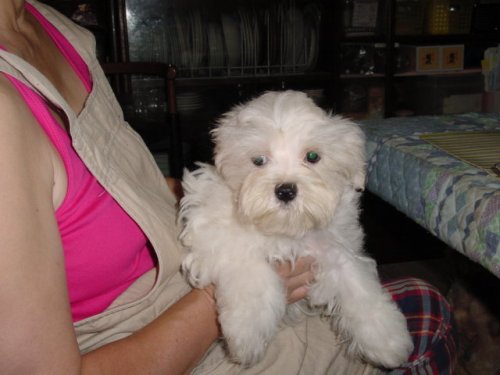 この度ご縁がありまして村島ブリーダーさんから可愛いマルチーズの男の子を譲って頂きました。犬を飼うことは初めてだったのですが2度ほど見学し、アドバイスも頂き、安心して子犬を迎えることができました。何かあれば電話でいつでも相談にのって下さるとのことで心強いです。子犬もとても元気でおトイレもすぐに覚えてとってもいい子です。ありがとうございました。(栃木県 女性)