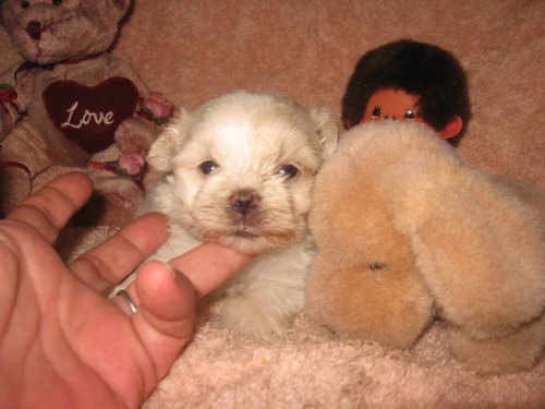 コメント | 両親小振り 可愛い子です 生後1ヶ月の体重は440g フードも食べ元気で愛想の良い子です 噛み合せは正常 ヘルニアもありません これから段々可愛くなると思います |