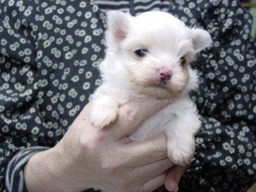 この度ご縁がありまして村島ブリーダーさんから可愛いマルチーズの男の子を譲って頂きました。犬を飼うことは初めてだったのですが2度ほど見学し、アドバイスも頂き、安心して子犬を迎えることができました。何かあれば電話でいつでも相談にのって下さるとのことで心強いです。子犬もとても元気でおトイレもすぐに覚えてとってもいい子です。ありがとうございました。(栃木県 女性)
