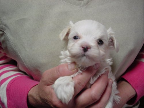 この度ご縁がありまして村島ブリーダーさんから可愛いマルチーズの男の子を譲って頂きました。犬を飼うことは初めてだったのですが2度ほど見学し、アドバイスも頂き、安心して子犬を迎えることができました。何かあれば電話でいつでも相談にのって下さるとのことで心強いです。子犬もとても元気でおトイレもすぐに覚えてとってもいい子です。ありがとうございました。(栃木県 女性)