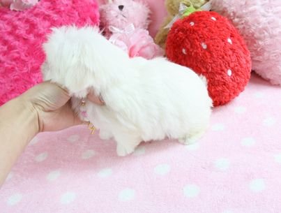 コメント | 毛量もと~っても多く、フワフワモコモコ♪のマルチーズの女の子!!! お鼻も短くて、お顔まんまるですよ~ 手足もとても短く、胴もぐちゅっと詰まってます。 とてもおとなしい子なので、 カメラを向かると、もうドキドキ❤で緊張しちゃって、 目を閉じてしまうんです(汗) 性格はと~ってもおとなしいタイプです。 無駄吠えもなく、飼いやすい子です。 3月1日現在 生後61日で体重は580gです。 成犬時予想体重は~2kg前後までの小ぶりなマルチーズサイズ予想です。 父 1.5kg 母 2kg 1回目のワクチン接種済みです。 |