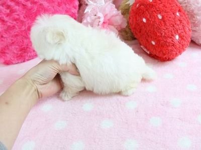 コメント | 3月1日撮影 毛量もと~っても多く、フワフワモコモコ♪のマルチーズの女の子!!! かなりお鼻も短くて、お顔まんまるですよ~ 手足もとても短く、胴もぐちゅっと詰まってます。 とてもおとなしい子なので、 カメラを向かると、もうドキドキ❤で緊張しちゃって、 目を閉じてしまうんです(汗) 半分ぐらいのお目めに写っちゃってます(涙) 性格はと~ってもおとなしいタイプです。 無駄吠えもなく、飼いやすい子です。 3月1日現在 生後61日で体重は420gです。 成犬時予想体重は1.4~1.7kg前後までの極小マルチーズサイズ予想です。 父 1.5kg 母 2kg 1回目のワクチン接種済みです。 |