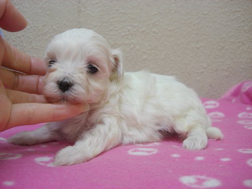 コメント | 3匹のマルチーズの兄妹の内の1匹ですが・・・ 兄妹の内で一番小さい子です。 離乳食も一生懸命食べています。 この男の子は小振りな子です。 父犬 JKCチャンピオン直子 2kg 母犬 2キロg この子は、かなり小振りです。 家庭犬としても最高の家族としてお迎え頂けます。 お引渡しは早ければ年末にと思いますが 兄妹は皆とても小さい子なので、年明けのお正月後になる 場合もあると思います。 あと半月も経てば毛も吹いてきれいな ぬいぐるみのような マルチーズになります。 予約頂ければワクチン接種後数日ようすを見た上で お引渡しいたします。 ご見学歓迎です。 ただし・・見学は必ず予約が必要です。 見学に来られる方は必ず前日予約してください 午後からの見学になります。 一度お問い合わせの上、ご来訪をお願い致します。 詳細は、お訊ね下さいね。 |