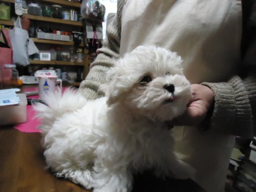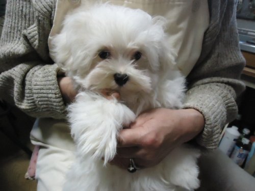 この度ご縁がありまして村島ブリーダーさんから可愛いマルチーズの男の子を譲って頂きました。犬を飼うことは初めてだったのですが2度ほど見学し、アドバイスも頂き、安心して子犬を迎えることができました。何かあれば電話でいつでも相談にのって下さるとのことで心強いです。子犬もとても元気でおトイレもすぐに覚えてとってもいい子です。ありがとうございました。(栃木県 女性)