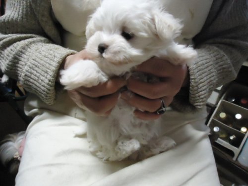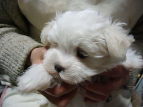 この度ご縁がありまして村島ブリーダーさんから可愛いマルチーズの男の子を譲って頂きました。犬を飼うことは初めてだったのですが2度ほど見学し、アドバイスも頂き、安心して子犬を迎えることができました。何かあれば電話でいつでも相談にのって下さるとのことで心強いです。子犬もとても元気でおトイレもすぐに覚えてとってもいい子です。ありがとうございました。(栃木県 女性)