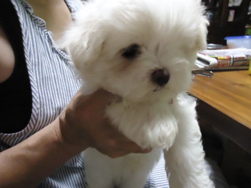 この度ご縁がありまして村島ブリーダーさんから可愛いマルチーズの男の子を譲って頂きました。犬を飼うことは初めてだったのですが2度ほど見学し、アドバイスも頂き、安心して子犬を迎えることができました。何かあれば電話でいつでも相談にのって下さるとのことで心強いです。子犬もとても元気でおトイレもすぐに覚えてとってもいい子です。ありがとうございました。(栃木県 女性)