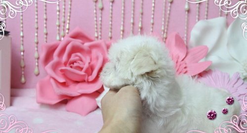 コメント | ■11月6日撮影■ お鼻超詰まっていて、 お目めくりっくり^^ お顔のすっごく可愛いClaraちゃん登場♪ 手足も胴も短いタイプです! 毛量も多くてふわふわ~^^ 涙やけのない真っ白なマルチーズです! 実物はもっともっと可愛いですよ~♪ 性格はマイペースですごくおとなしい子です^^ 癒されること間違いなし^^ 11月6日現在 生後52日で体重360gです。 成犬時予想体重は1.3~1.5kg前後の超極小サイズ予想です。 父 1.5kg 母 1.8kg 1回目のワクチンは接種済みです。 |