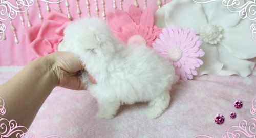 コメント | ■12月17日撮影■ お鼻もめちゃ短くって、小さくて^^ お目めもちょっぴり離れ気味で可愛いです♪ ペットちゃんタイプのマルチーズ顔(^^♪ もちろん手足が短く、胴も詰まっているタイプです。 アイラインもしっかり入ってます。 実物は画像以上にもっともっと可愛い子です^^ 性格はおとなしいタイプです!でも人なつこくて可愛い子ですよ!! とても飼いやすい子ですよ! 12月17日現在 生後66日で体重370gです。 成犬時予想体重は~1.5kg前後の超極小サイズ予想です。 父 1.2kg 母 1.7kg 1回目のワクチンは接種済みです。 |