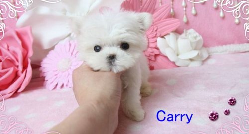 コメント | ■2月6日撮影■ 超小さいマルチーズの男の子!!! ちょっぴりたれ目で。 お鼻もかなり短く^^ お顔まんまるでとても可愛いお顔ですよ♪ もちろん手足が短く、胴も詰まっているタイプです。 実物はもっともっと可愛いです♪ 性格は人なつこくて明るくて、そしてマイペース^^ 無駄吠えもなく、とても飼いやすい子ですよ! 2月6日現在 生後60日で体重350gです。 成犬時予想体重は1~1.3kg前後の超超極小サイズ予想です。 父 1.2kg 母 1.7kg 1回目のワクチンは接種済みです。 |