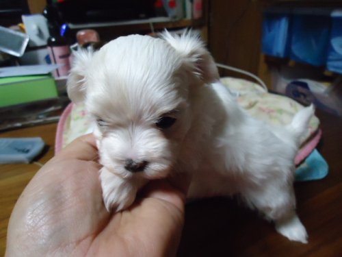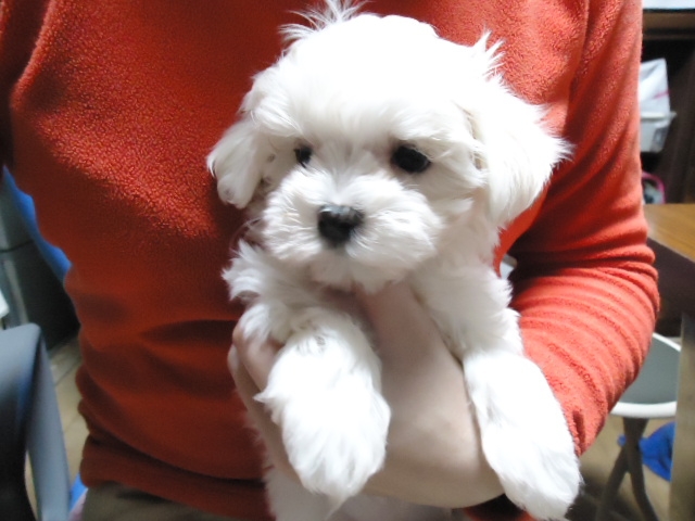 この度ご縁がありまして村島ブリーダーさんから可愛いマルチーズの男の子を譲って頂きました。犬を飼うことは初めてだったのですが2度ほど見学し、アドバイスも頂き、安心して子犬を迎えることができました。何かあれば電話でいつでも相談にのって下さるとのことで心強いです。子犬もとても元気でおトイレもすぐに覚えてとってもいい子です。ありがとうございました。(栃木県 女性)