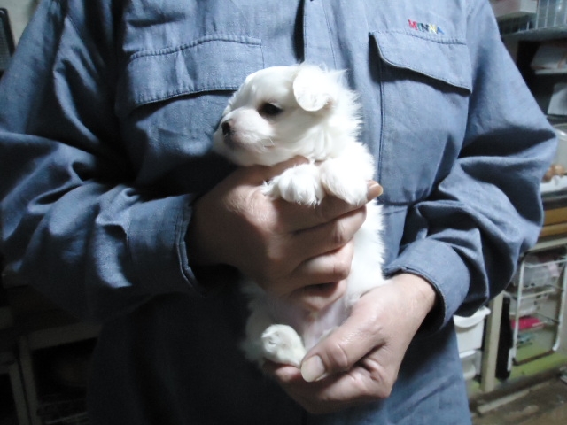 この度ご縁がありまして村島ブリーダーさんから可愛いマルチーズの男の子を譲って頂きました。犬を飼うことは初めてだったのですが2度ほど見学し、アドバイスも頂き、安心して子犬を迎えることができました。何かあれば電話でいつでも相談にのって下さるとのことで心強いです。子犬もとても元気でおトイレもすぐに覚えてとってもいい子です。ありがとうございました。(栃木県 女性)