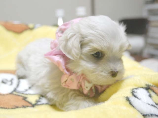 コメント | 2人兄妹のかわいい女の子です。 お父さんはムサシ君、お母さんはコユキちゃんです。(ピンクリボンちゃん) ぜひご見学にお越しください。 見てびっくりのかわいさです! |