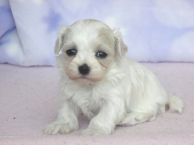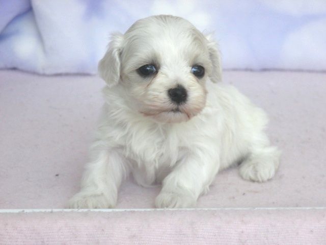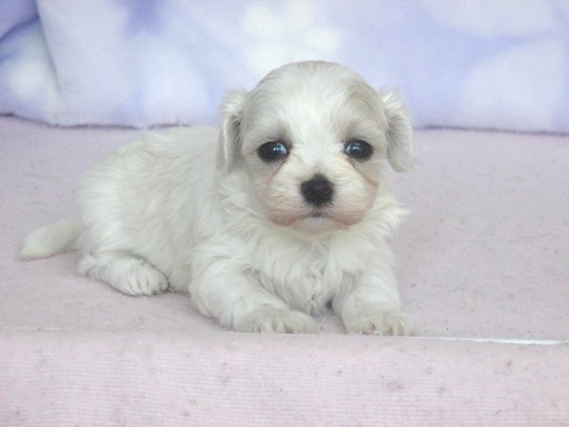 コメント | マルチーズの女の子です。 写真でもわかる通り、耳と頭にレモン斑があります。 成長につれて目立たなくなってくると思います。 両親ともに人懐っこく性格のいい子たちで、この子たちも人間が大好きです。 健康状態も良好で、離乳も順調に進んでいます。 |