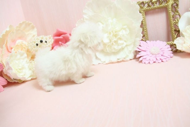 本当に素晴らしいブリーダーさんだと思いました。 お会いしてみて本当によく分かりました。 お会いするまでは色々心配しましたが健康第一に繁殖されてこられたのがよく分かり本当に良かったです。 子犬も実物拝見して、こんなに小さいのにしっかりしていて、顔も可愛くて涙やけのない綺麗な子は初めてみて、本当にびっくりしました。 毛量も多く毛質も良く、アイラインもマズルもしっかり色が上がりどこをとっても素晴らしく、性格も人懐っこくて明るいし、無駄吠えの無い大人しい子でした。 次も絶対こちらでお願いしたいと思います。 慣れてきたら先住犬のマルチーズと仲良く日向ぼっこしてる姿を見れる日が楽しみです。 ありがとうございました。(神奈川県 女性)