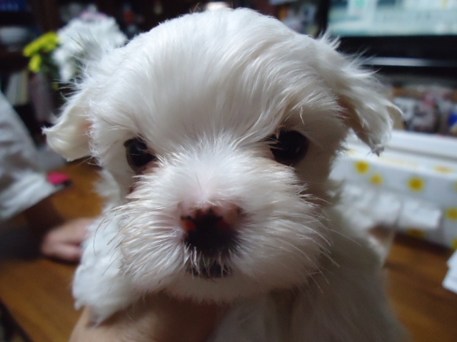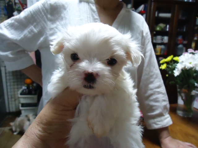 この度ご縁がありまして村島ブリーダーさんから可愛いマルチーズの男の子を譲って頂きました。犬を飼うことは初めてだったのですが2度ほど見学し、アドバイスも頂き、安心して子犬を迎えることができました。何かあれば電話でいつでも相談にのって下さるとのことで心強いです。子犬もとても元気でおトイレもすぐに覚えてとってもいい子です。ありがとうございました。(栃木県 女性)