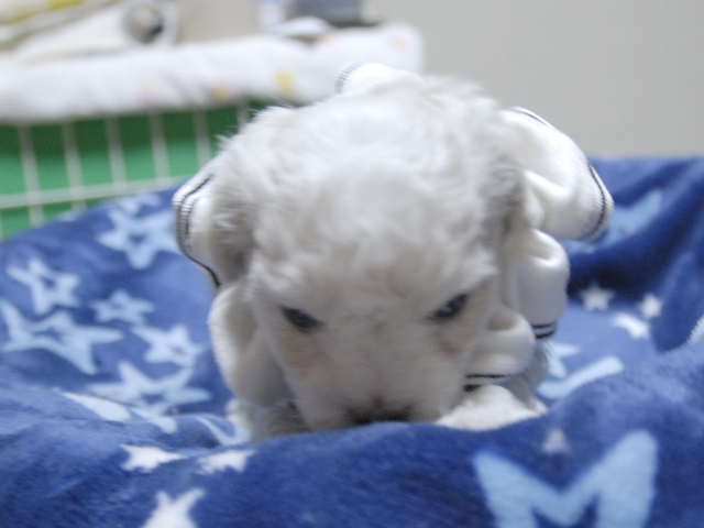 この度はとっても元気な子をありがとうございました。 見学の際は駅まで迎えにきていただき、説明もとても丁寧で安心しました。 空輸で送っていただき、ありがとうございました。 迎えてから一週間が経ち、家にも慣れて、へそ天で寝ています。 トイレトレーニングも、来た時から8割できていて、今ではほとんど失敗しなくなりました。 可愛く元気で、毎日元気に飛び跳ねています。(奈良県 女性)