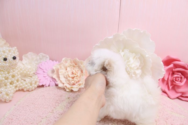 本当に素晴らしいブリーダーさんだと思いました。 お会いしてみて本当によく分かりました。 お会いするまでは色々心配しましたが健康第一に繁殖されてこられたのがよく分かり本当に良かったです。 子犬も実物拝見して、こんなに小さいのにしっかりしていて、顔も可愛くて涙やけのない綺麗な子は初めてみて、本当にびっくりしました。 毛量も多く毛質も良く、アイラインもマズルもしっかり色が上がりどこをとっても素晴らしく、性格も人懐っこくて明るいし、無駄吠えの無い大人しい子でした。 次も絶対こちらでお願いしたいと思います。 慣れてきたら先住犬のマルチーズと仲良く日向ぼっこしてる姿を見れる日が楽しみです。 ありがとうございました。(神奈川県 女性)