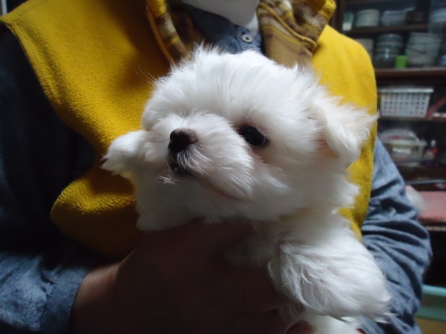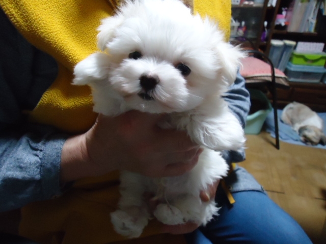 この度ご縁がありまして村島ブリーダーさんから可愛いマルチーズの男の子を譲って頂きました。犬を飼うことは初めてだったのですが2度ほど見学し、アドバイスも頂き、安心して子犬を迎えることができました。何かあれば電話でいつでも相談にのって下さるとのことで心強いです。子犬もとても元気でおトイレもすぐに覚えてとってもいい子です。ありがとうございました。(栃木県 女性)