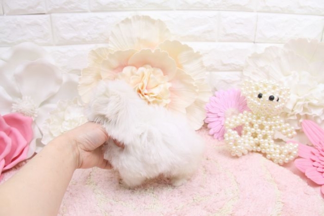 コメント | 4月4日撮影 お目めは大きくて、お鼻どん詰まり! くちゅっとしたお顔のマルチーズですよ^^ 毛量も多くて、足も短く ボールのようにまんまるな体型~^^ 性格はマイペースでおとなしいタイプです。 4月4日現在 生後68日で体重450gです。 成犬時予想体重は~1.5kg前後の~超極小サイズ予想です。 父 1.2kg 母1.6kg 1回目のワクチンは接種済みです。 |