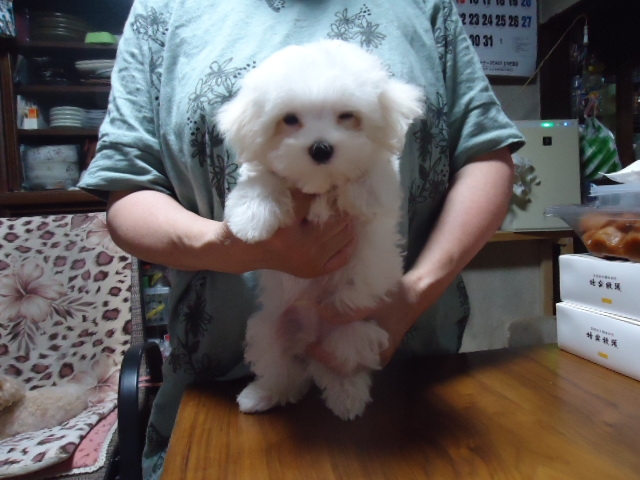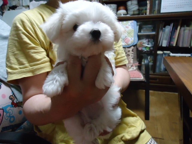 この度ご縁がありまして村島ブリーダーさんから可愛いマルチーズの男の子を譲って頂きました。犬を飼うことは初めてだったのですが2度ほど見学し、アドバイスも頂き、安心して子犬を迎えることができました。何かあれば電話でいつでも相談にのって下さるとのことで心強いです。子犬もとても元気でおトイレもすぐに覚えてとってもいい子です。ありがとうございました。(栃木県 女性)