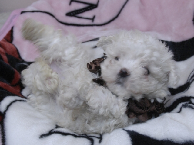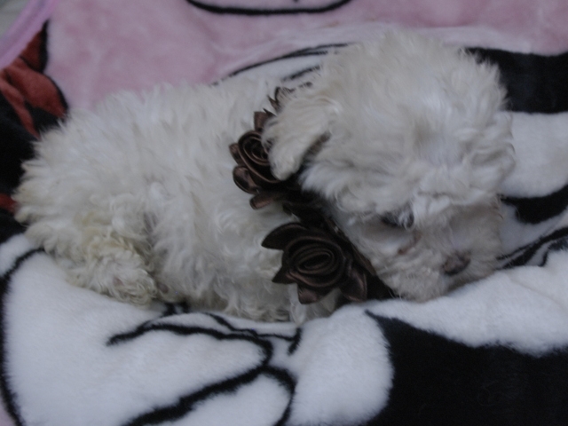 この度はとっても元気な子をありがとうございました。 見学の際は駅まで迎えにきていただき、説明もとても丁寧で安心しました。 空輸で送っていただき、ありがとうございました。 迎えてから一週間が経ち、家にも慣れて、へそ天で寝ています。 トイレトレーニングも、来た時から8割できていて、今ではほとんど失敗しなくなりました。 可愛く元気で、毎日元気に飛び跳ねています。(奈良県 女性)