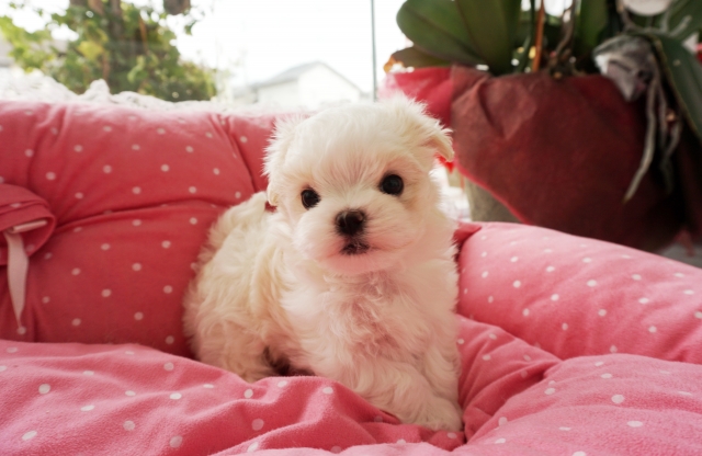 マルチーズの子犬を探しており、HPで可愛い姿を見て、問い合わせをさせていただいたところ、快く予定を組んでくださり、すぐに見学をさせていただけました。実際に子犬を見て、とても可愛い子だったので、その場で契約をさせていただきました。はじめの問い合わせの際も、見学の際もとても丁寧に対応してくださり、久しぶりの子犬の飼育で不安があった私達に色々とアドバイスをしてくださいました。詳しい飼育方法については、メールをいただき、子犬を迎えるまでに事前に準備をすることができたので大変助かりました。 我が家に迎え入れた後も、こまめにご連絡いただいたり、何かあったらいつでも連絡してくださいと言ってくださったり、サポートがとても心強いです。 とても愛情を持って、子犬を育ててくださった事が伝わってくるブリーダーさんです。大切に育てた子を譲ってくださって、本当にありがとうございました。トリミングサロンも経営なさっているので、またお手入れもお願いしたいと思っております。(兵庫県 女性)