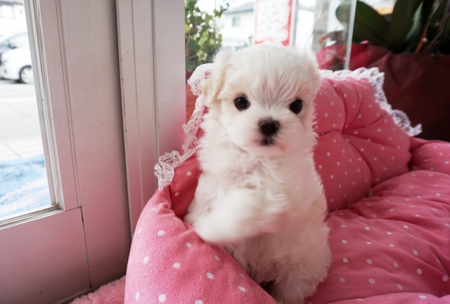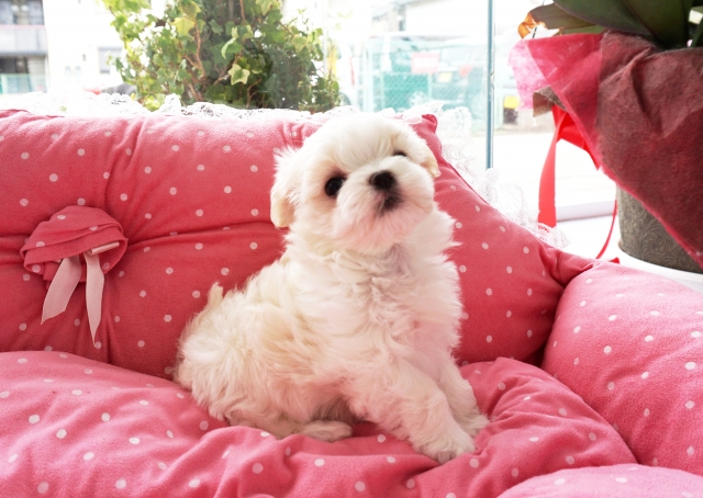 マルチーズの子犬を探しており、HPで可愛い姿を見て、問い合わせをさせていただいたところ、快く予定を組んでくださり、すぐに見学をさせていただけました。実際に子犬を見て、とても可愛い子だったので、その場で契約をさせていただきました。はじめの問い合わせの際も、見学の際もとても丁寧に対応してくださり、久しぶりの子犬の飼育で不安があった私達に色々とアドバイスをしてくださいました。詳しい飼育方法については、メールをいただき、子犬を迎えるまでに事前に準備をすることができたので大変助かりました。 我が家に迎え入れた後も、こまめにご連絡いただいたり、何かあったらいつでも連絡してくださいと言ってくださったり、サポートがとても心強いです。 とても愛情を持って、子犬を育ててくださった事が伝わってくるブリーダーさんです。大切に育てた子を譲ってくださって、本当にありがとうございました。トリミングサロンも経営なさっているので、またお手入れもお願いしたいと思っております。(兵庫県 女性)