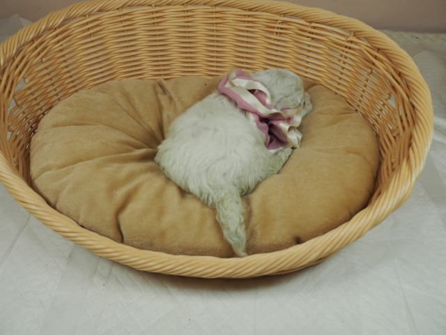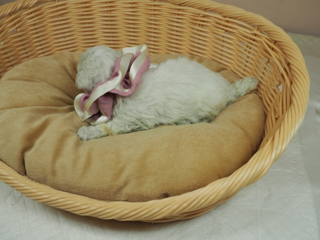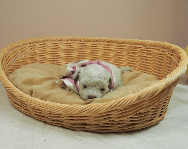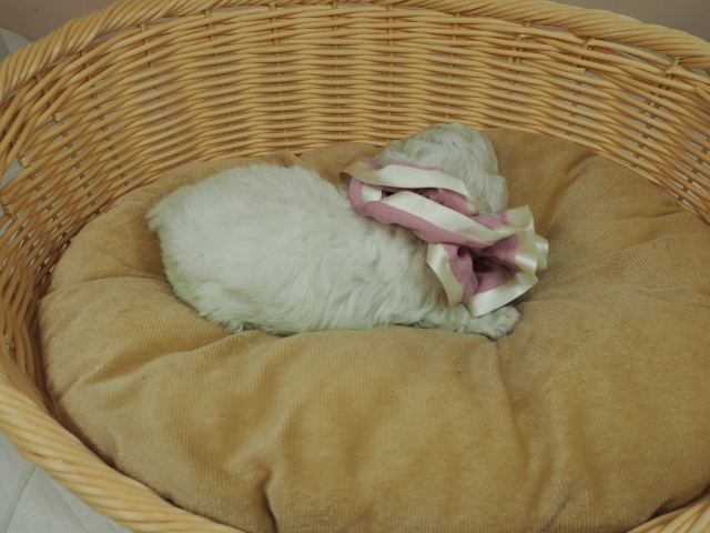 この度はとっても元気な子をありがとうございました。 見学の際は駅まで迎えにきていただき、説明もとても丁寧で安心しました。 空輸で送っていただき、ありがとうございました。 迎えてから一週間が経ち、家にも慣れて、へそ天で寝ています。 トイレトレーニングも、来た時から8割できていて、今ではほとんど失敗しなくなりました。 可愛く元気で、毎日元気に飛び跳ねています。(奈良県 女性)