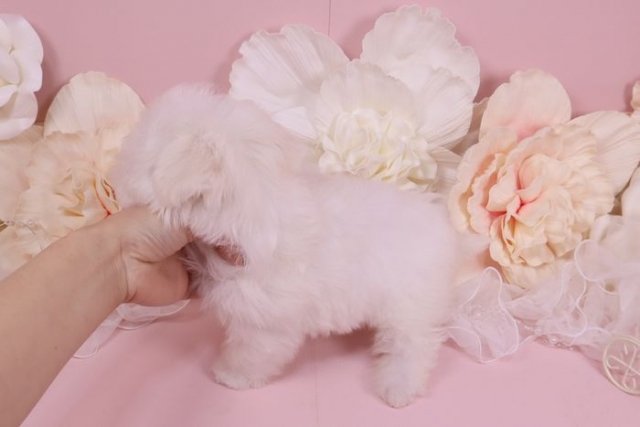 本当に素晴らしいブリーダーさんだと思いました。 お会いしてみて本当によく分かりました。 お会いするまでは色々心配しましたが健康第一に繁殖されてこられたのがよく分かり本当に良かったです。 子犬も実物拝見して、こんなに小さいのにしっかりしていて、顔も可愛くて涙やけのない綺麗な子は初めてみて、本当にびっくりしました。 毛量も多く毛質も良く、アイラインもマズルもしっかり色が上がりどこをとっても素晴らしく、性格も人懐っこくて明るいし、無駄吠えの無い大人しい子でした。 次も絶対こちらでお願いしたいと思います。 慣れてきたら先住犬のマルチーズと仲良く日向ぼっこしてる姿を見れる日が楽しみです。 ありがとうございました。(神奈川県 女性)