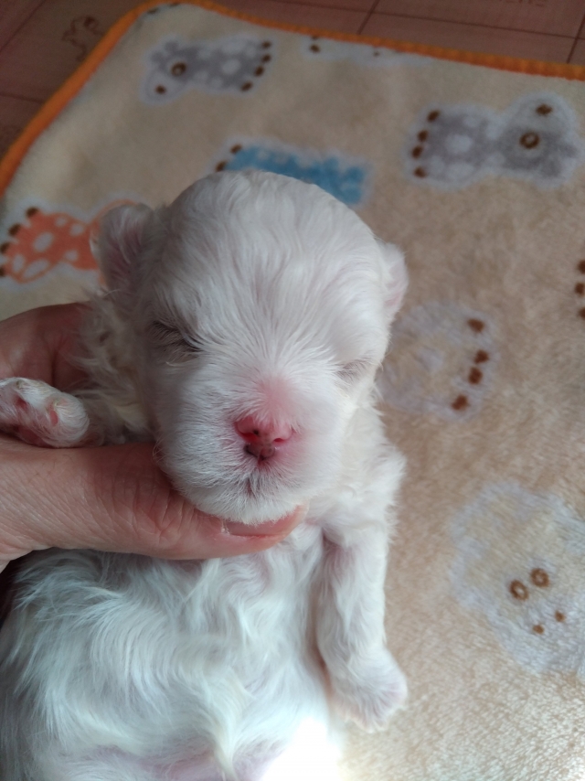 この度は素敵な御縁をありがとうございました! 私情で購入を決定した後受け取りまで日があったのですが、メールにてわんちゃんのお写真・現在の状態を送っていただき非常に安心できました。 自宅にて飼育しており本当にマルチーズが大好きなのだと感じました、素敵な御縁に感謝です。本当にありがとうございました!(香川県 女性)