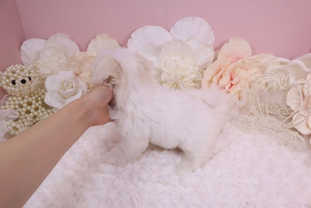 本当に素晴らしいブリーダーさんだと思いました。 お会いしてみて本当によく分かりました。 お会いするまでは色々心配しましたが健康第一に繁殖されてこられたのがよく分かり本当に良かったです。 子犬も実物拝見して、こんなに小さいのにしっかりしていて、顔も可愛くて涙やけのない綺麗な子は初めてみて、本当にびっくりしました。 毛量も多く毛質も良く、アイラインもマズルもしっかり色が上がりどこをとっても素晴らしく、性格も人懐っこくて明るいし、無駄吠えの無い大人しい子でした。 次も絶対こちらでお願いしたいと思います。 慣れてきたら先住犬のマルチーズと仲良く日向ぼっこしてる姿を見れる日が楽しみです。 ありがとうございました。(神奈川県 女性)
