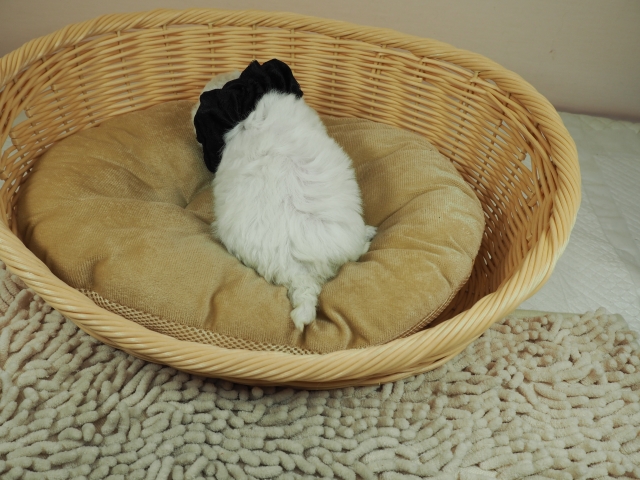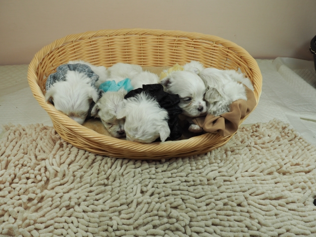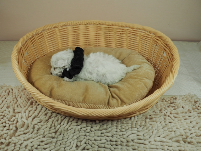 この度はとっても元気な子をありがとうございました。 見学の際は駅まで迎えにきていただき、説明もとても丁寧で安心しました。 空輸で送っていただき、ありがとうございました。 迎えてから一週間が経ち、家にも慣れて、へそ天で寝ています。 トイレトレーニングも、来た時から8割できていて、今ではほとんど失敗しなくなりました。 可愛く元気で、毎日元気に飛び跳ねています。(奈良県 女性)