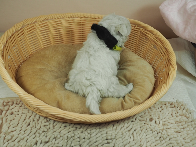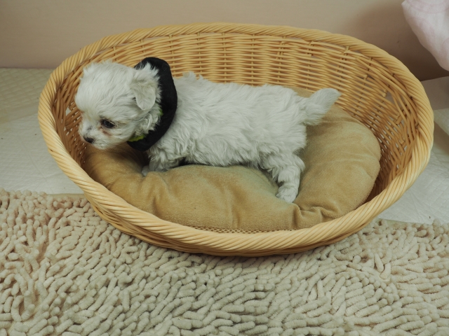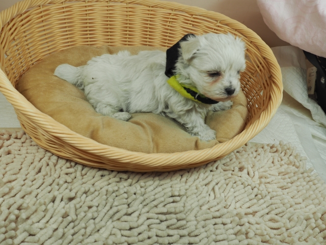 この度はとっても元気な子をありがとうございました。 見学の際は駅まで迎えにきていただき、説明もとても丁寧で安心しました。 空輸で送っていただき、ありがとうございました。 迎えてから一週間が経ち、家にも慣れて、へそ天で寝ています。 トイレトレーニングも、来た時から8割できていて、今ではほとんど失敗しなくなりました。 可愛く元気で、毎日元気に飛び跳ねています。(奈良県 女性)