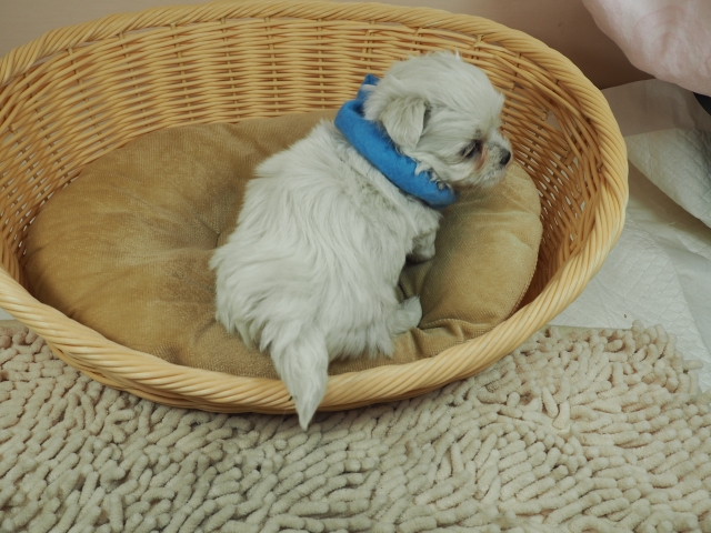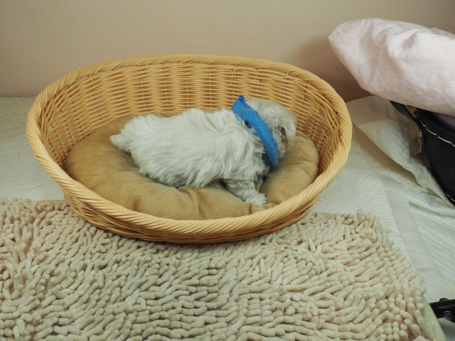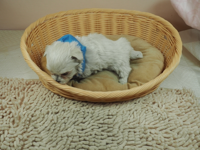この度はとっても元気な子をありがとうございました。 見学の際は駅まで迎えにきていただき、説明もとても丁寧で安心しました。 空輸で送っていただき、ありがとうございました。 迎えてから一週間が経ち、家にも慣れて、へそ天で寝ています。 トイレトレーニングも、来た時から8割できていて、今ではほとんど失敗しなくなりました。 可愛く元気で、毎日元気に飛び跳ねています。(奈良県 女性)