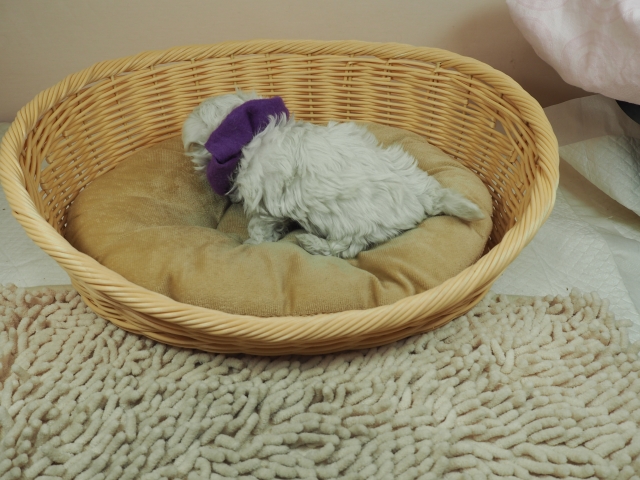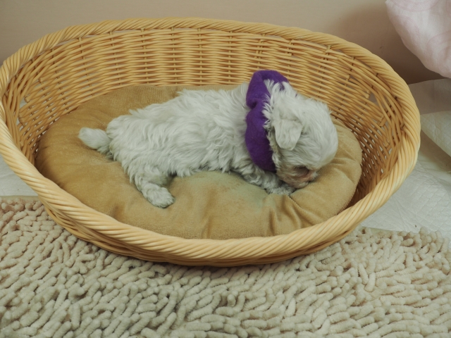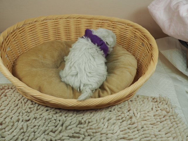 この度はとっても元気な子をありがとうございました。 見学の際は駅まで迎えにきていただき、説明もとても丁寧で安心しました。 空輸で送っていただき、ありがとうございました。 迎えてから一週間が経ち、家にも慣れて、へそ天で寝ています。 トイレトレーニングも、来た時から8割できていて、今ではほとんど失敗しなくなりました。 可愛く元気で、毎日元気に飛び跳ねています。(奈良県 女性)