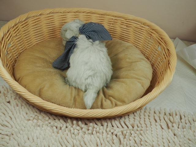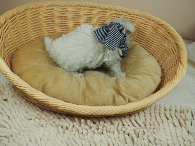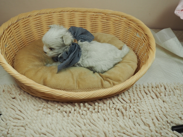 この度はとっても元気な子をありがとうございました。 見学の際は駅まで迎えにきていただき、説明もとても丁寧で安心しました。 空輸で送っていただき、ありがとうございました。 迎えてから一週間が経ち、家にも慣れて、へそ天で寝ています。 トイレトレーニングも、来た時から8割できていて、今ではほとんど失敗しなくなりました。 可愛く元気で、毎日元気に飛び跳ねています。(奈良県 女性)
