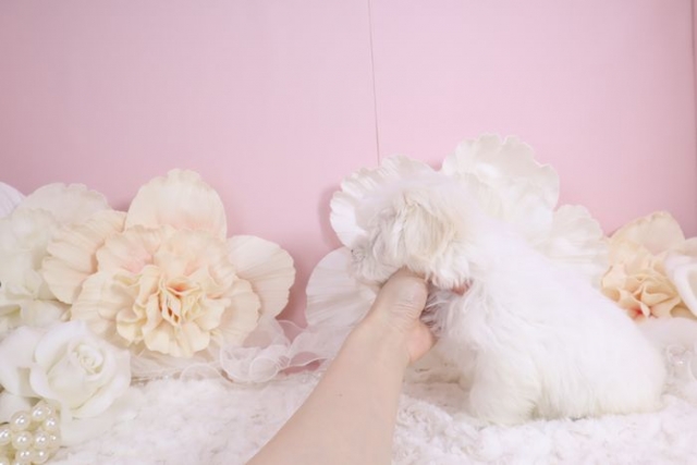 本当に素晴らしいブリーダーさんだと思いました。 お会いしてみて本当によく分かりました。 お会いするまでは色々心配しましたが健康第一に繁殖されてこられたのがよく分かり本当に良かったです。 子犬も実物拝見して、こんなに小さいのにしっかりしていて、顔も可愛くて涙やけのない綺麗な子は初めてみて、本当にびっくりしました。 毛量も多く毛質も良く、アイラインもマズルもしっかり色が上がりどこをとっても素晴らしく、性格も人懐っこくて明るいし、無駄吠えの無い大人しい子でした。 次も絶対こちらでお願いしたいと思います。 慣れてきたら先住犬のマルチーズと仲良く日向ぼっこしてる姿を見れる日が楽しみです。 ありがとうございました。(神奈川県 女性)