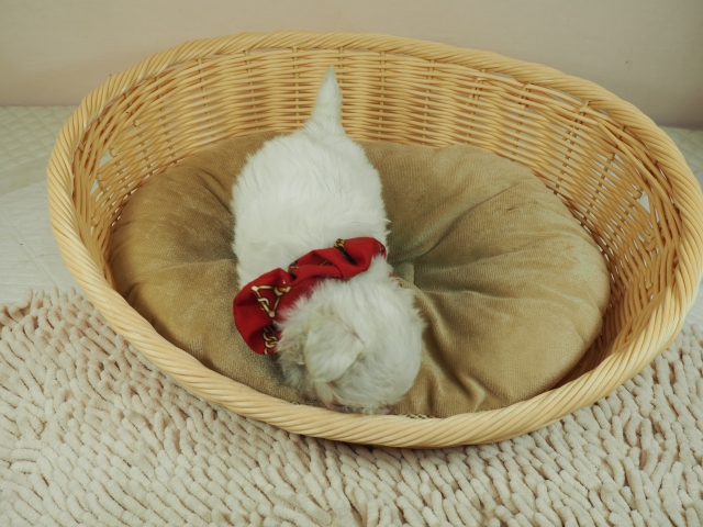 この度はとっても元気な子をありがとうございました。 見学の際は駅まで迎えにきていただき、説明もとても丁寧で安心しました。 空輸で送っていただき、ありがとうございました。 迎えてから一週間が経ち、家にも慣れて、へそ天で寝ています。 トイレトレーニングも、来た時から8割できていて、今ではほとんど失敗しなくなりました。 可愛く元気で、毎日元気に飛び跳ねています。(奈良県 女性)