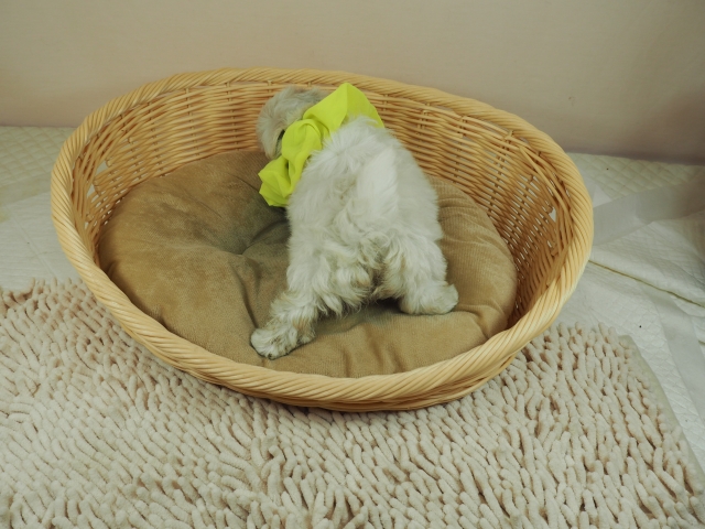 この度はとっても元気な子をありがとうございました。 見学の際は駅まで迎えにきていただき、説明もとても丁寧で安心しました。 空輸で送っていただき、ありがとうございました。 迎えてから一週間が経ち、家にも慣れて、へそ天で寝ています。 トイレトレーニングも、来た時から8割できていて、今ではほとんど失敗しなくなりました。 可愛く元気で、毎日元気に飛び跳ねています。(奈良県 女性)