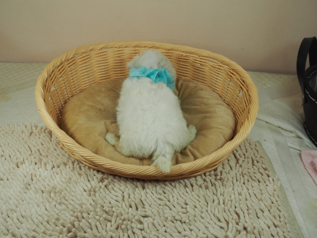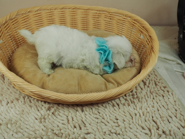 この度はとっても元気な子をありがとうございました。 見学の際は駅まで迎えにきていただき、説明もとても丁寧で安心しました。 空輸で送っていただき、ありがとうございました。 迎えてから一週間が経ち、家にも慣れて、へそ天で寝ています。 トイレトレーニングも、来た時から8割できていて、今ではほとんど失敗しなくなりました。 可愛く元気で、毎日元気に飛び跳ねています。(奈良県 女性)