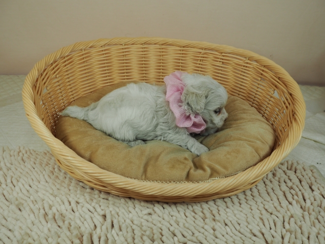 この度はとっても元気な子をありがとうございました。 見学の際は駅まで迎えにきていただき、説明もとても丁寧で安心しました。 空輸で送っていただき、ありがとうございました。 迎えてから一週間が経ち、家にも慣れて、へそ天で寝ています。 トイレトレーニングも、来た時から8割できていて、今ではほとんど失敗しなくなりました。 可愛く元気で、毎日元気に飛び跳ねています。(奈良県 女性)