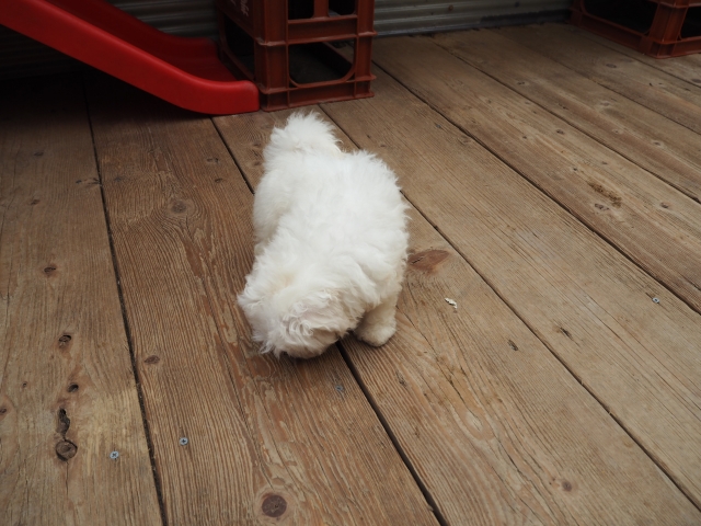 この度はとっても元気な子をありがとうございました。 見学の際は駅まで迎えにきていただき、説明もとても丁寧で安心しました。 空輸で送っていただき、ありがとうございました。 迎えてから一週間が経ち、家にも慣れて、へそ天で寝ています。 トイレトレーニングも、来た時から8割できていて、今ではほとんど失敗しなくなりました。 可愛く元気で、毎日元気に飛び跳ねています。(奈良県 女性)