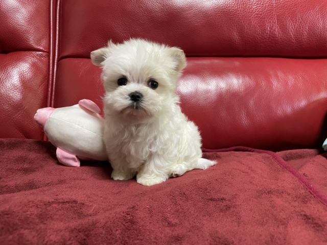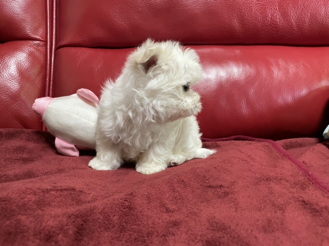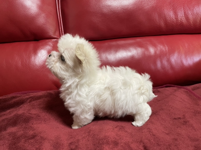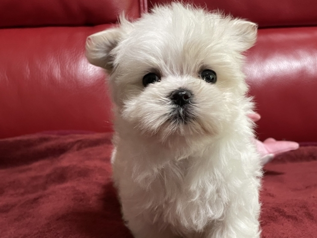 今回、素晴らしいご縁に恵まれて可愛いマルチーズの男の子を迎えることが出来ました。最初の問い合わせから現在に至るまでスムーズな連絡と親切な対応をして下さり、今後も何かあれば聞いてくださいと心強いお言葉をかけていただきました。とても信頼出来るブリーダーさんです。仔犬は小柄ながら元気いっぱいで、人懐っこく可愛い子です。これから精一杯、大切に育てていきたいと思います。 本当にありがとうございました。(大分県 女性)