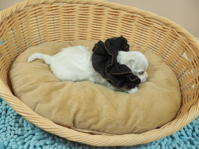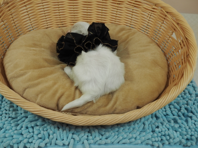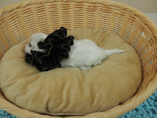この度はとっても元気な子をありがとうございました。 見学の際は駅まで迎えにきていただき、説明もとても丁寧で安心しました。 空輸で送っていただき、ありがとうございました。 迎えてから一週間が経ち、家にも慣れて、へそ天で寝ています。 トイレトレーニングも、来た時から8割できていて、今ではほとんど失敗しなくなりました。 可愛く元気で、毎日元気に飛び跳ねています。(奈良県 女性)