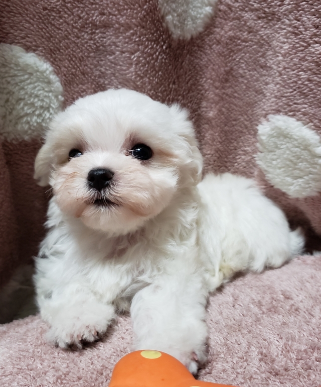 マルチーズの子犬を探しており今回こちらでご縁があり我が家に天使がやって来ました。オス犬を飼うのが初めてだったのと、健康面や性格の安定感は勿論、お顔に拘っていたのであちこち探していて、その中からこちらに決めさせて頂きました。同じ近畿圏内と言うこともあったのですが何より本当の情報を丁寧に説明して頂いた事です。見学も日程など柔軟に対応して頂いた事や実際にお会いした時も、勿論ボランティアさんではない営利を目的とされておられますが、それ以外に動物を扱っておられる責任と愛情が感じられ、非常に信頼と好感がもてました。実際購入手続きが完了してから子犬をお迎えに行く時、更にこちらに子犬がやってきてからも、気を遣って頂いていますので、売って終わり〜などとは無縁なブリーダーさんです。 まだまだちっちゃいので、気は抜けませんが家族として大切に育てていきます。 色々困った事などが発生しても安心して何でもお聞き出来るブリーダーさんでした。 有難うございます。(大阪府 女性)