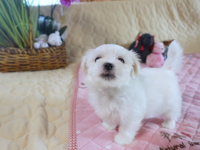 コメント | ★マイクロチップ語尾数字518 ★ 足胴が短くコロコロふわふわ目垂れ少ない綺麗小ぶり子犬 ★片手で抱っこも小さな成犬を予想。 ★マルチーズをお迎えされる時の特に皆様が気になさるのは、真っ白毛並みですので目焼けが少なく綺麗あることです。目垂れが少ないとケアが他の色付き犬種と同じで楽です。当方マルチーズ両親共に目垂れが少なく綺麗で私もケアが容易です。 ★ 小さな子ですが、食欲旺盛 健康で長生きする子です。 ★毛抜けないので服につくこともありません。毛のアレルギーの方にも安心です。 ★リビング生まれ育ち、優しいママから自然な乳離れ情緒が安定。 他ショップより初年度混合ワクチン回数は、母乳からも免疫豊富で少なく2回です。ワクチンは本来身体には、悪いものなので回数少なく効能が有る方が理想。 ★リビング育ちで兄弟仲間と毎日触れ合い楽しく遊ぶ術が分る社会性のある子なので先住わんちゃんとも仲良くできます。 ★両親DNA検査クリアー よって、この子も大丈夫、容姿の可愛さもさることながら多くの飼主様が最も、希望されるのは、欠陥無く健康長生きできる素質のある子です。 そして、歴代血縁で交配していないので、より丈夫賢さ際立ち学習能力高く躾が楽しいと全国お迎えのご家庭から定評です。 ★ この子の価値からすると安価設定。 ※ お迎え全体価格は、生体代金¥370000に加え 別途 混合ワクチン代金1回¥7700 2回¥15400(初年度1年間では最終ワクチン終了) 空輸がある場合¥30000 (生体価格は、各費用の消費税10%やマイクロチップ代込) ★ 遠方にお住まいでご来店が難しい方は、お住まいの最寄りのところ委託販売店でお迎え可能ですのでお気軽にお問合せください。 ※ 当ショップは繁殖犬少数でご家庭と同じ環境のアットホームリビング飼いにこだわり、子犬の心身の健康と性格の質の向上に努め、お迎え後のアフターも手厚くできるようにしています。 子犬のご縁先の行方が分りアフターができるようにオークションにかけず、ペットショップ等に卸すこともしていません。 飼主様側にたった手厚いZPK・全国ペット協会の生体保証書(1年以内に欠陥があったり死亡した場合、代替え生体子犬か生体代全額返金、治療を希望される場合は、生体代を上限に治療費を保障する:弁護士監修 全国ペット協会ZPK発行)が子犬の健康に自信がありますので無料です。 パパ:マルチーズ2.1k ママ:マルチーズ3.2k・・両親共に心身健康でDNA遺伝子検査クリーアー小型犬では小ぶりサイズ。 ※ 健康長生き可能な元々欠陥無く健康な子をお迎えです。 次に大切なのは、歯周病菌に冒されないことです。 人もですが、歯周病菌は血液を通り全身の臓器を痛め、特に目立つのは心臓病です。健康な子は鼻呼吸を穏やかにしていますが、心臓が悪くなると口でだんだん荒く息をし出します。これが高じると咳き込み出します。病院では悪化を緩やかにする薬を処方されますが、治す薬ではありません。 そうなった時には、後の後悔先に立たずです。 可哀想で、荒い息づかい咳き込みの辛い様子はいたたまれない気持ちになります。 ※ 歯磨きして歯周病菌に犯されない丈夫な身体が肝要。歯石が溜まる月年齢は個体差ありますが、永久歯にすっかり生え替わった1歳過ぎからです。いきなり歯磨き始めたのでは、歯ブラシの違和感さに、かなり抵抗されてしまいがちです。よって、歯ブラシ大好きになって貰う、そして自分で歯磨きしてもらうと飼主様が楽ちんです。 その為、犬自らできる歯磨き遊びを子犬時代の適期に導入していただきます。 ペットショップ、ブリーダーでは歯磨きを実践していてお迎えご家庭に指導させていただいているのは珍しいとは思いますが、健康長生きの秘訣で非常に大切です。当方からお迎えの全国の飼い主様達が実践してくださり健康長寿に貢献しております。当方は里の親となりますので大変感謝しています。 病院とは無縁で、20歳越えの元気な長寿を目指してください。 当方にて素直で従順な子犬ですが、犬は向き合う人によって態度を変える動物で縦社会で上下を作ります。新しい環境でのお迎え当座の躾が肝要となります。 当座の躾は非常に簡単です。始めの数日のお迎え後の接し方で上下関係は決まります。簡単です。ご指導いたします。 各種カード・peypey決済可能 (決済料金を当方負担としておりますので、現金払いの方には値引きしております) アニコム損保動物保険会社の代理店ですのでアニコムの保険を1ヶ月プレゼントしています(当方、2ヶ月目からの保険は任意)因みにペットショップの場合、子犬の交換という生体保証が10万前後の有料、1ヵ月のプレゼント保険の後の向こう1年間は必須加入が殆どです。 ※飼い始め応援!・・躾、健康面のケア、スターターグッズ等適切な物を紹介しています。 ゲージ等特に大きな商品は玄関に宅急便で届き楽、ネット注文苦手な方はお手伝いします。 直ぐに飼い始められるようお気軽にお尋ねく
