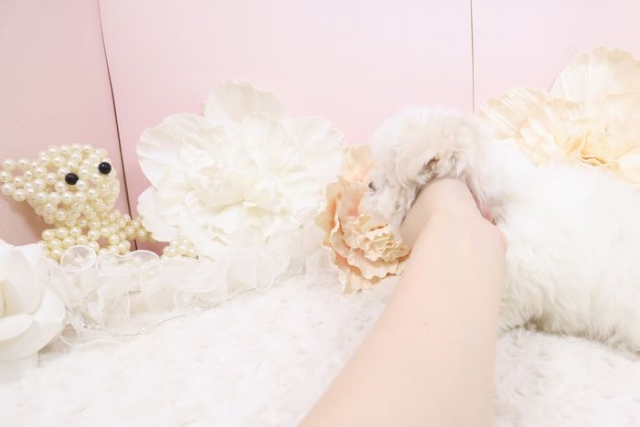 対応もとても親切で丁寧にして下さり、仔犬もとても大切に育てて頂いたんだと思うほど 人懐っこく 帰宅後も トイレシートでしっかりしていて感動しました(*^^*) 無駄吠えもなく食べる飲む寝る遊ぶしっかりしていてとても可愛いです。タイニーサイズとありましたがとても小さく本当に可愛いですし とてもお利口さんです。 今後ともお付き合いしていただけるとのことで 安心してお迎えする事が出来ました(*^^*)(大阪府 女性)