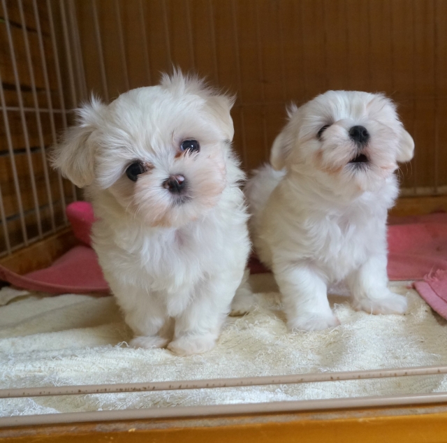 コメント | 少しあいたマルチーズの子達。 男の子と女の子のきょうだいです。 少しサイズに差が出ています。 45日で700グラムの女の子、870グラムのお男の子です。 性格は女の子のほうが静かで、おおらかなようです。 毛量の豊かさや、毛並み、骨格など心配のない成長です。 犬社会の勉強も始まり、飛び跳ねるように遊んでいます。 (一緒に遊ぶダックスの子も優しいのですが少し迷惑かもしれませんが。) 動画は随時更新していきますので成長を見ていただけたらと思います。 おたずね、ご要望などは気軽にお知らせ下さい。 *JKC血統書、飼育マニュアル、飼育に役立つ参考資料をお付します。 *普段食べているフードをお付けします。 *ワクチン1回は済まします。(2回目以降はご負担ください。) *生命保証をつけています。(契約書に記入。) *近畿道の門真、大東、鶴見、第2京阪道 門真、出口の近くです。 |